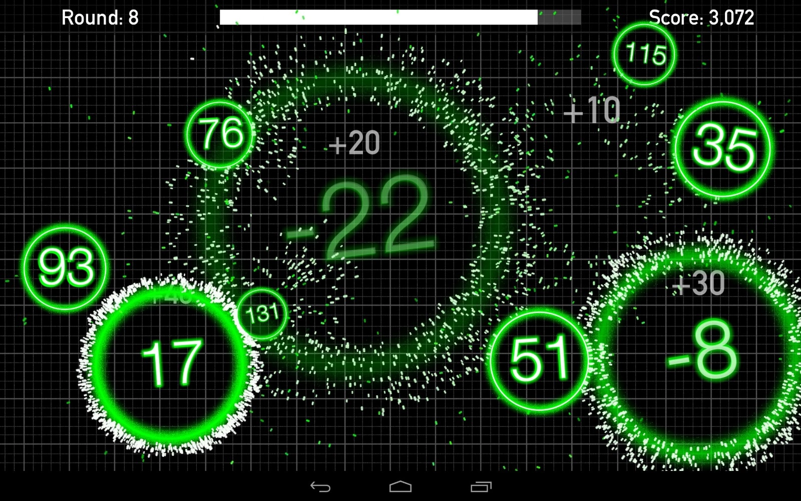 光芒爆裂这一玩法,需要具备敏锐的头脑与快速的触摸反应。从数值最小的到最大的,你要以最快速度去点击或者滑动那些发光的数字。每当一个光圈发生爆炸,你便能赚取点数,同时还能获得额外的时间。成功完成一个回合,就能获取更多的奖励时间。听起来似乎很容易,不过要当心,这游戏可是相当容易让人上瘾!
