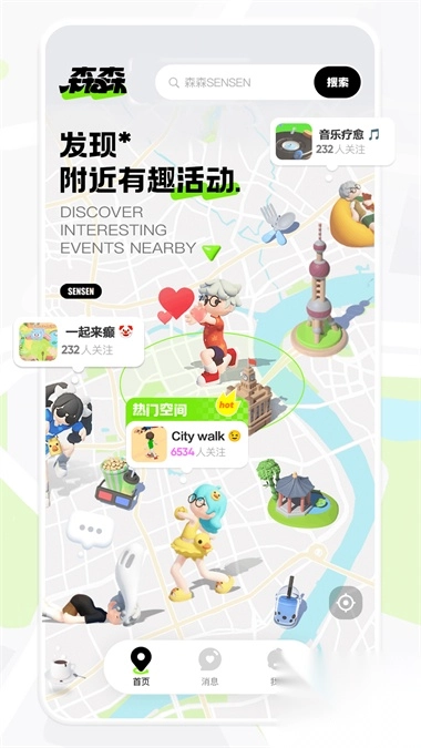 森森APP是一个主打虚拟角色形象的社交平台,用户们能够在线结识更多有意思的伙伴,还能发现周边的趣味活动。平台上有超多派对社交玩法等你来体验,操作十分便捷。要是你对这款软件感兴趣,不妨点击下载尝试一下!