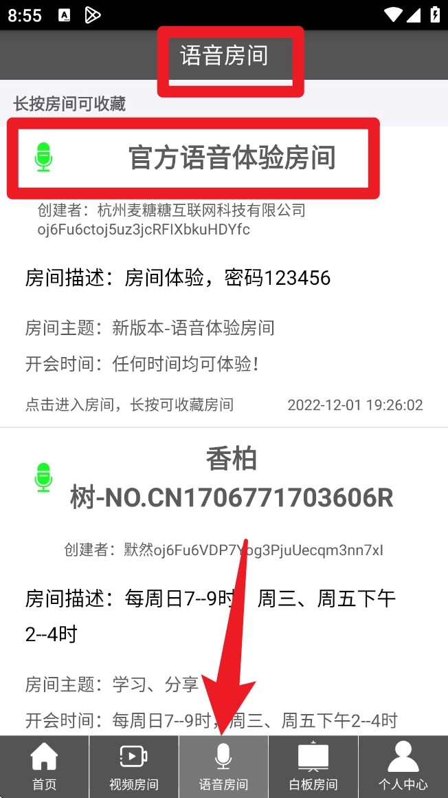 3. 在「语音房间」页面中,同样能查看官方及用户创建的语音房间内容,适合语音交流场景。