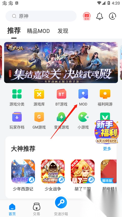 1、进入“MOD专区”;