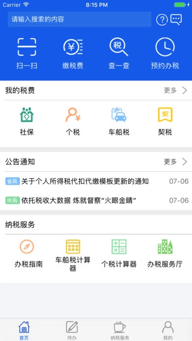 4、主要实现纳税人端重量级的功能应用,如:办税服务、税收咨询、税收法规、纳税人学堂、税收信息检索、媒体点评、涉税信息查询、税务工具箱、涉税信息推送、一户式档案等相关功能。