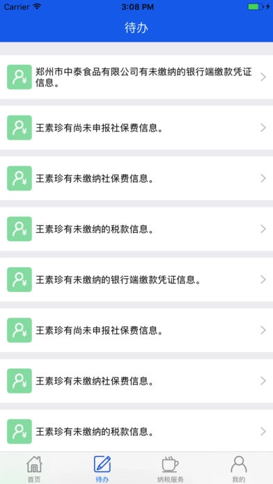 查看个人的社保、个税、车船税、契税等功能。