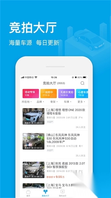 4、每日更新最新的汽车资源,每天都会在拍卖大厅中更新最近上新的汽车资源;