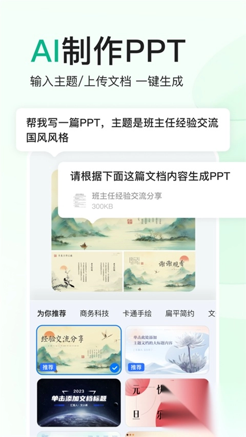 2、基于主题/文档快速生成PPT,海量模版随心选;