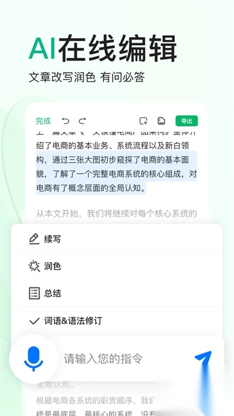 3、场景化伴随式交互:支持多场景语音交互,用户通过简单的口语化指令即可直接完成编辑或生成操作。