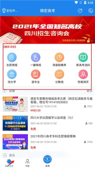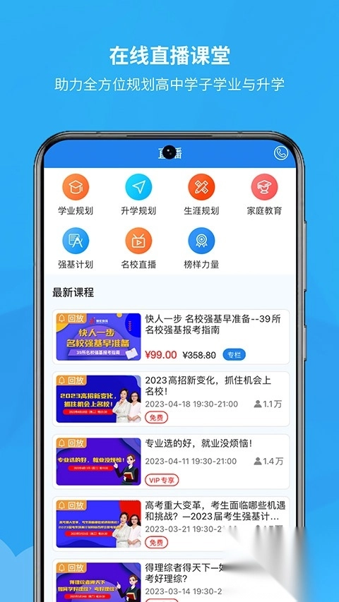 2、我们点击直播的话,可以看到有非常多的升学规划、学业规划、职业规划等等视频,用户可以免费观看