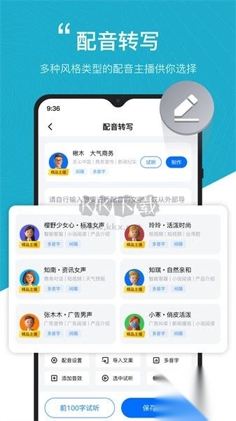 2、多样音色选择:提供经典的主播音色供用户挑选,还有各地不同的方言可选择使用,满足用户个性化的配音需求。