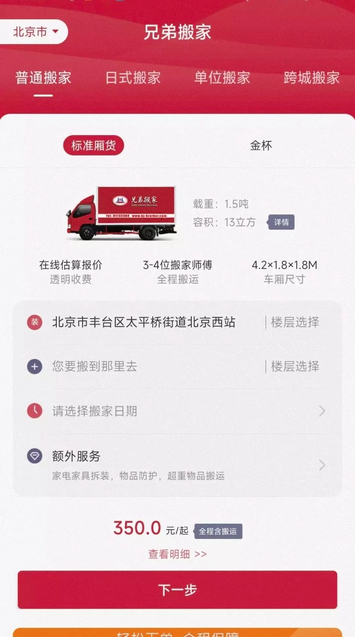 兄弟搬家APP,作为专业平台,提供全场景搬运服务。涵盖普通搬家、日式搬家、企业搬迁等多样服务类型,价格清晰透明,流程一目了然。用户能在线下单,还可查看订单详情与费用明细。不管是个人搬家,还是公司整体迁移,一键操作即可完成,让搬家变得轻松又省心。