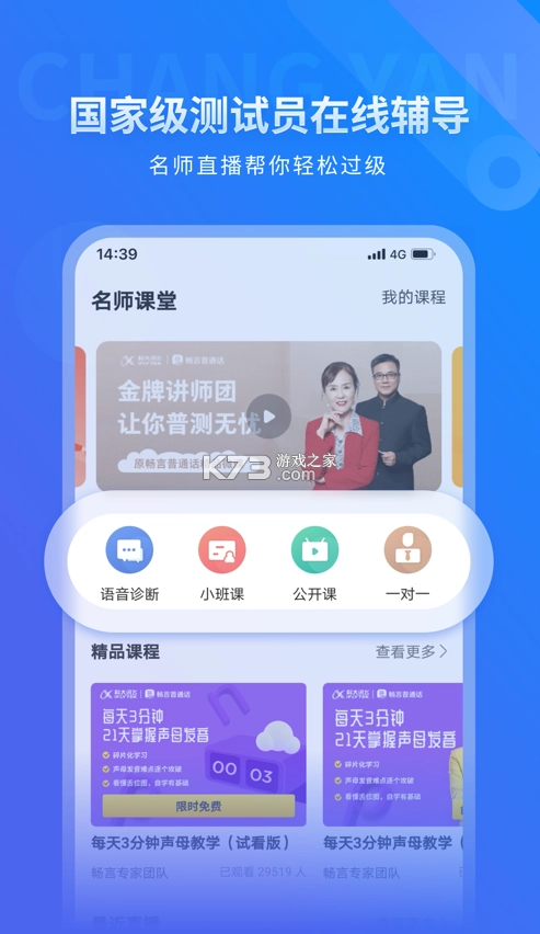 《畅言国语app下载》是一款精心为普通话学习者打造的教育平台。它致力于助力广大用户提高普通话水平,纠正错误发音。平台提供了大量优质的教学课程以及测试,用户均可免费体验。有需求的朋友,赶快下载吧!
