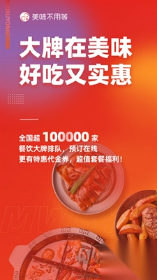 4、与同事、亲友聚餐时,借助美味不用等app,无论在家、在办公室,还是在任何地方,都能轻松挑选餐厅、在线排队,到店即可用餐。