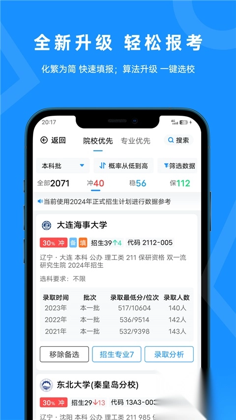 5、防撞车功能对各院校备选情况进行实时监控,让您填报志愿时更加安心,离心仪的大学更进一步。