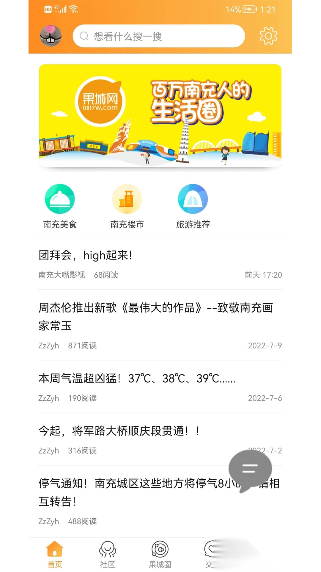果城网app专为南充本地居民服务,借助这款软件,大家能在线互动。软件准备了丰富的话题与功能,支持大家在线办理事务或进行查询。