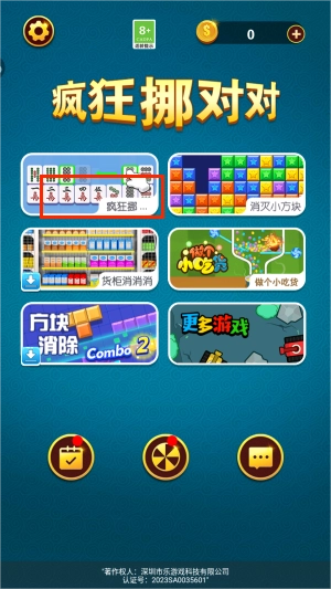 1、进入界面后,选择:疯狂挪对对,开始游戏。