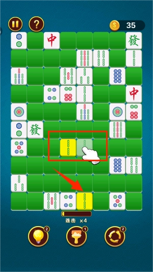 3、如果一样的麻将离得比较远,也可以通过拖动并入一起进行消除。