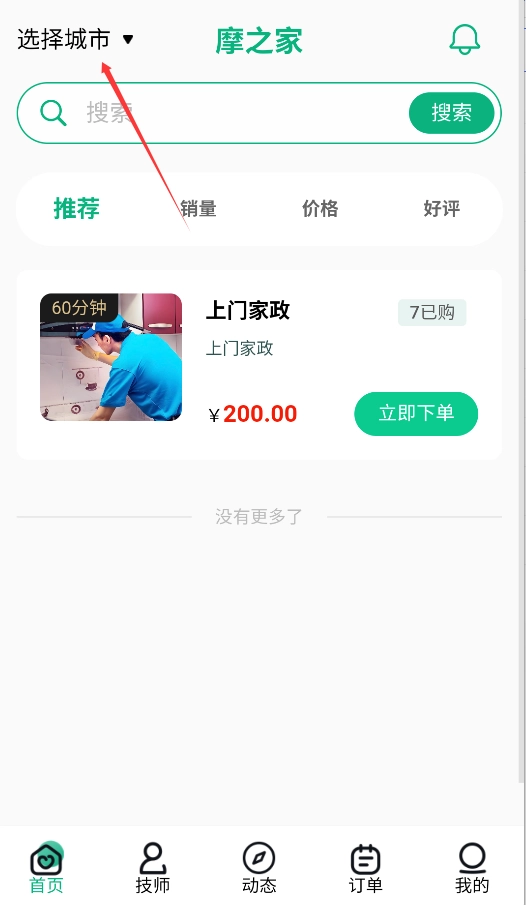 1、启动APP后,在首页左上角选择所在城市,系统将自动匹配当地服务资源。