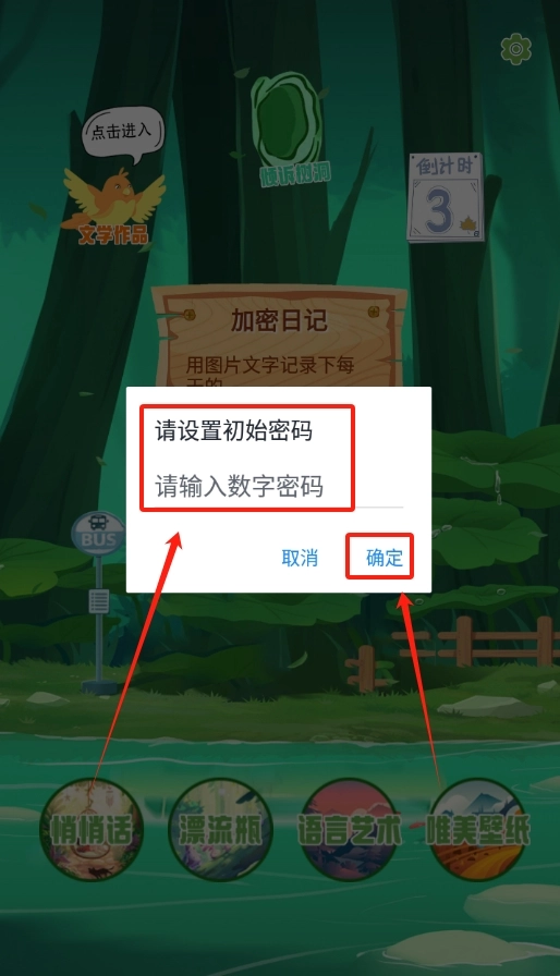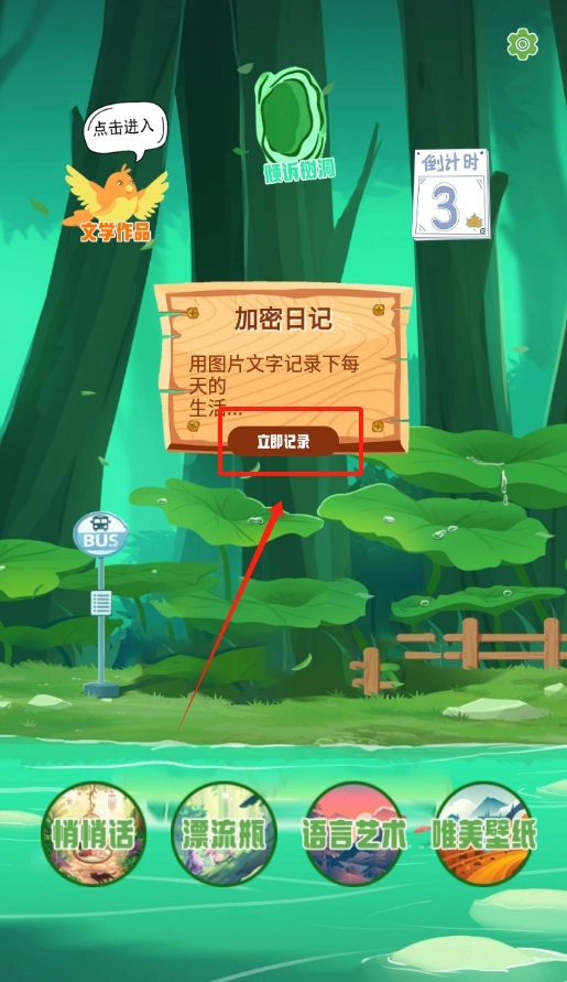 2、随机激励漂流瓶设定:每次开启能随机得到名人名言,在撰写日记之际收获意想不到的精神鼓舞。