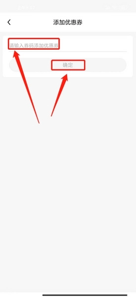 4、进入添加优惠券窗口,输入券码,找到【确定】。