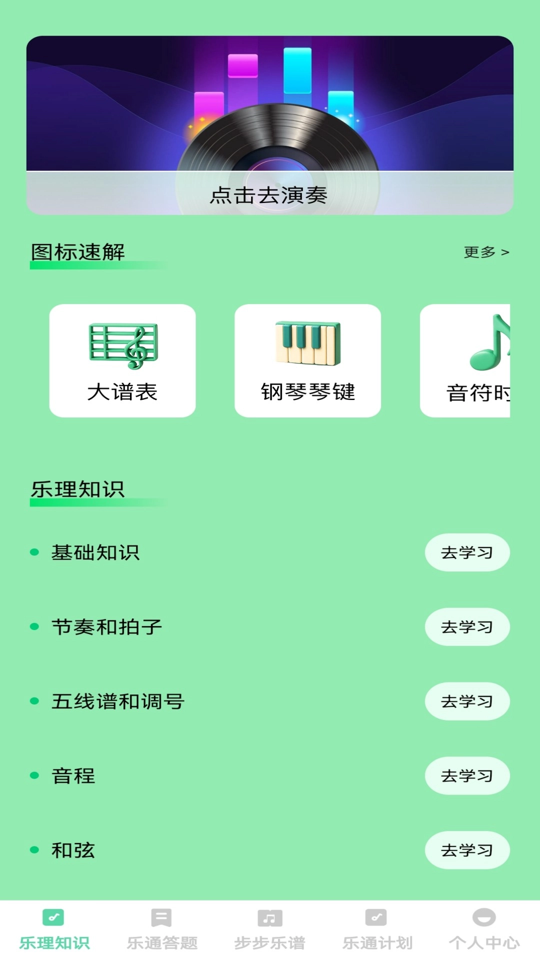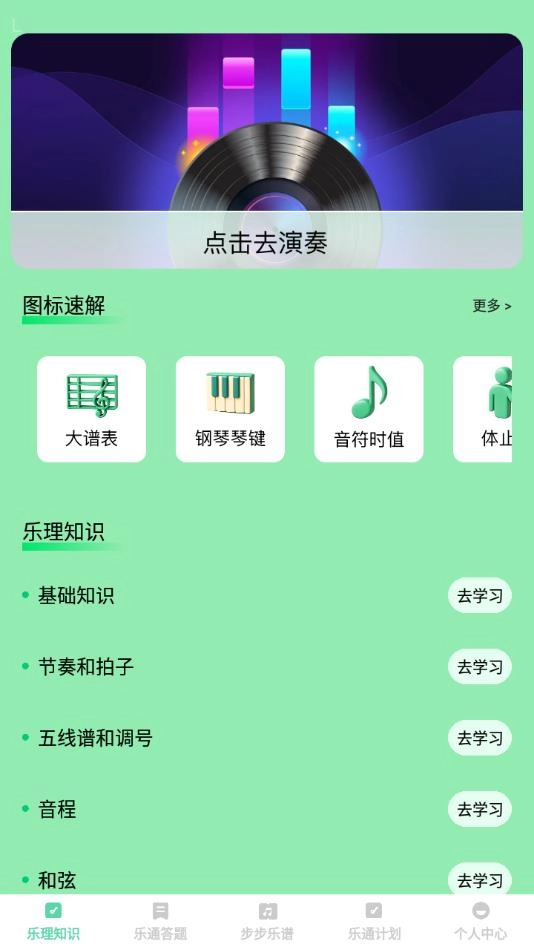 2、进入平台后,就可以学习各种乐理知识,还有图表速解掌握。