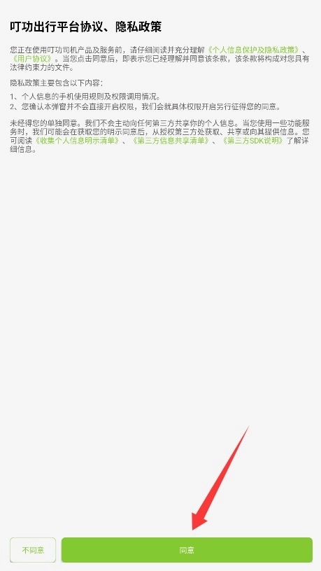1. 首次使用时,需仔细通读平台服务条款与隐私政策,确认无误后,点击“同意”按钮方可进入应用。