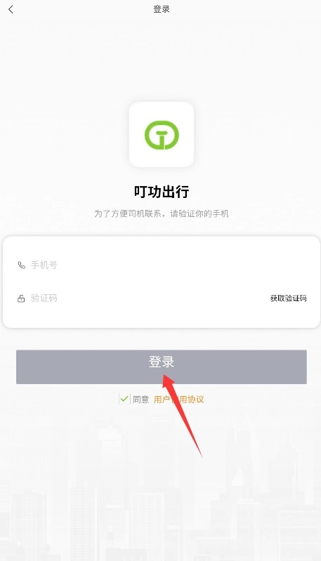 2、输入手机号获取验证短信,填写验证码并勾选协议后点击登录完成身份验证。