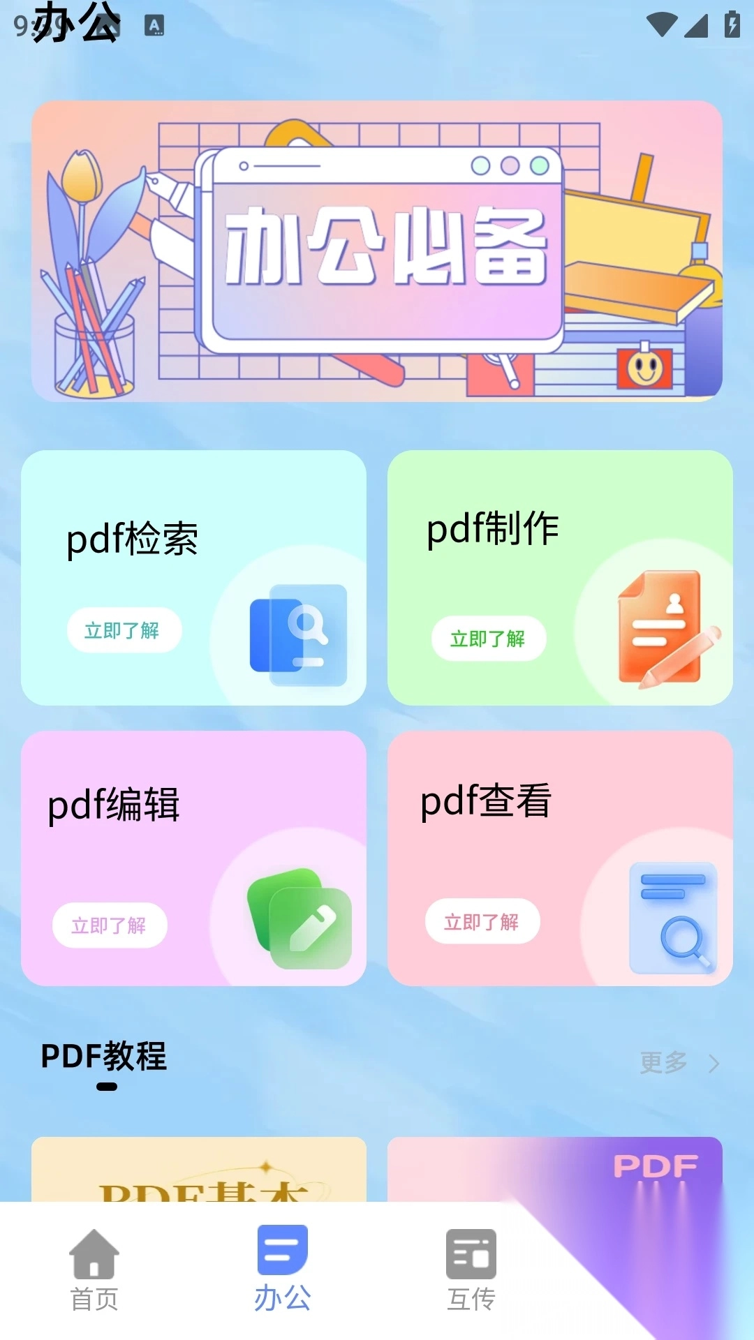 2、在办公页面中有PDF检索、PDF制作、PDF编辑、PDF查看等服务;