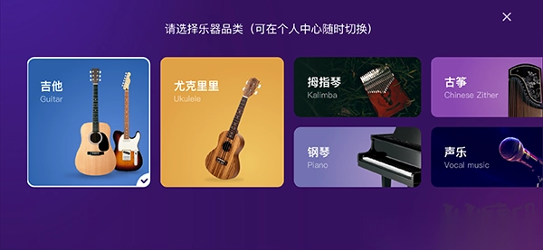 1、下载AI音乐学园安卓版打开,点击学习一门乐器后,以吉他为例
