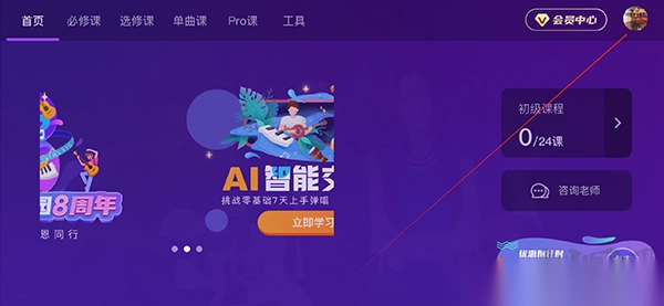 2、进来之后,全是关于吉他的一些教程,当你觉得这个乐器不适合自己时,点击头像