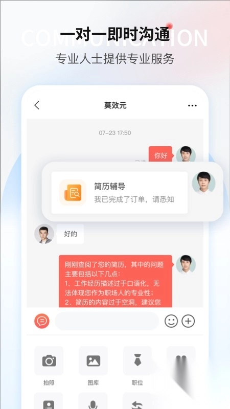 【即时沟通】和HR实时在线交流,把握主动权,实现快速入职。