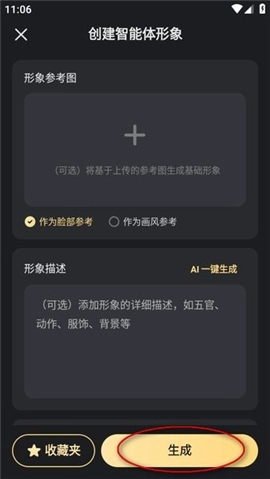 2、选择形象参考图和形象描述,然后点击“生成”;