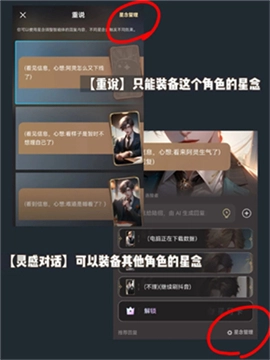 7、重说只能装备这个角色的星念,灵感对话可以装备其他角色的星念