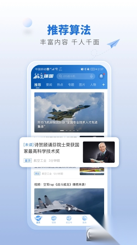 航空强国APP是一款聚焦航空领域的新闻类软件。在这款软件中,不仅拥有海量的航空相关新闻,用户还能够借此学习航空知识,及时了解国家航空资讯。此外,软件内还提供丰富的航空视频,让用户直观感受航空发展的伟大成就。