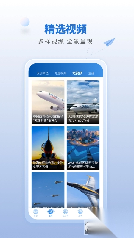 5、主流新闻:航空行业精选新闻聚合,各细分领域重要信息分类展示,主流视频图文。