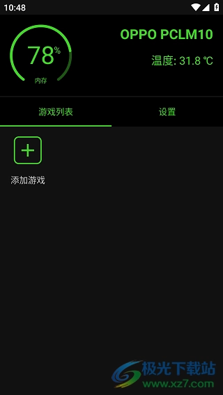 1、下载进入页面直接就来到自己的游戏列表啦,点击 页面的【添加游戏】