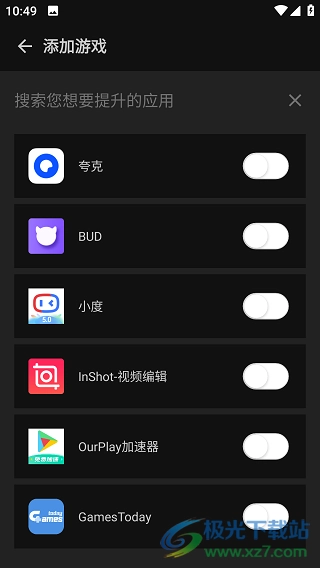 2、在此处展示您想要提升的应用,右侧手动滑动即可开启。