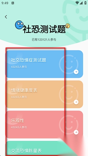 2、社恐测试题可以体验各种测试小答题。