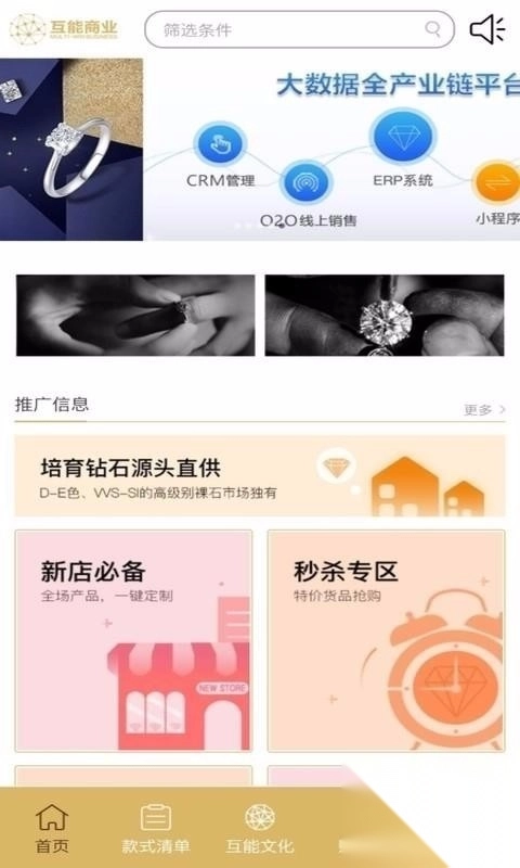 互能商业APP是实验室培育钻石全产业链品牌服务商所构建的线上B2B平台,其定位聚焦于打造时尚轻奢风格的珠宝首饰。