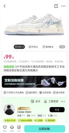在太痕潮鞋APP,所有球鞋均为正品,品质有保障。除定制服务外,大家还能直接购买心仪的球鞋。平台费用透明,用户可放心下单定制各类时尚潮鞋。同时,你还能对不同潮鞋的定制价格进行比价,挑选出性价比最高的款式下单。