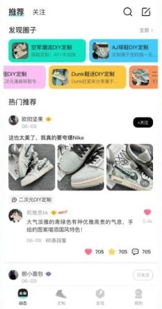 遇到感兴趣的设计师,一键关注即可随时掌握其最新作品动态,让专属设计潮鞋的寻找过程更加便捷。太痕潮鞋还会全面推荐展示各类潮鞋动态,用户可随时参与潮鞋圈子的互动讨论,了解更多精彩有趣内容。有需求的用户,赶快下载太痕潮鞋手机版体验吧!