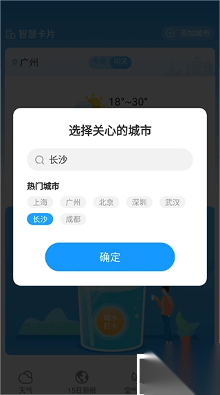 2、在弹出的框中选择关注的城市;