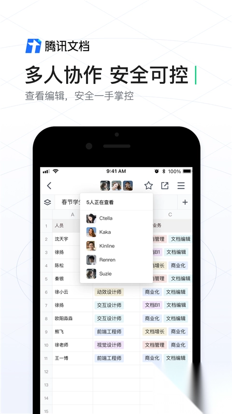 腾讯文档企业版支持超过数百人以上的同时在线协作,帮助企业高效处理文档内容。
