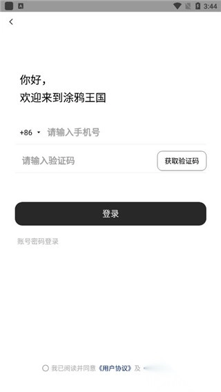 1. 先下载并安装好涂鸦王国app,安装完成后运行该软件,首次使用时,优先选择通过账号登录的方式来进入软件。
