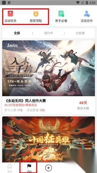 4、点击活动板块,还可参与平台任务挑战,赢取奖励。