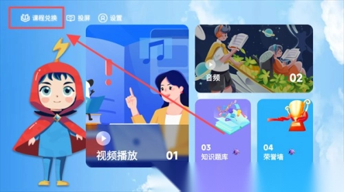1.打开万物指南后,在软件首页界面左上方找到并点击“课程兑换”选项按钮进入相关页面。