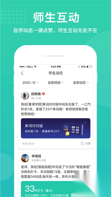 2. 借助系统批改与一键奖评功能,只需一部手机,就能轻松提升教学效率。