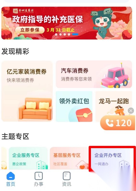 1. 点开手机上的“郑好办”APP,于首页寻觅商事登记“一件事”板块,接着点击进入企业开办专区。