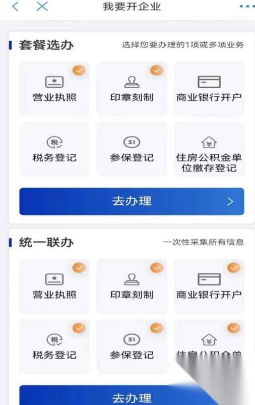 2、登录后依据自身需求,若选 “点餐” 式,可按需勾选业务;若选 “套餐” 式,系统自动整合多项服务。一次填表单、上传材料,跨部门业务一次性办结。