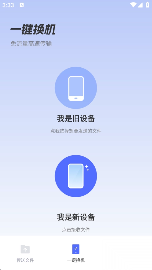 1. 在一键换机页面,分别选择旧手机与新手机,随后执行一键连接传输操作。