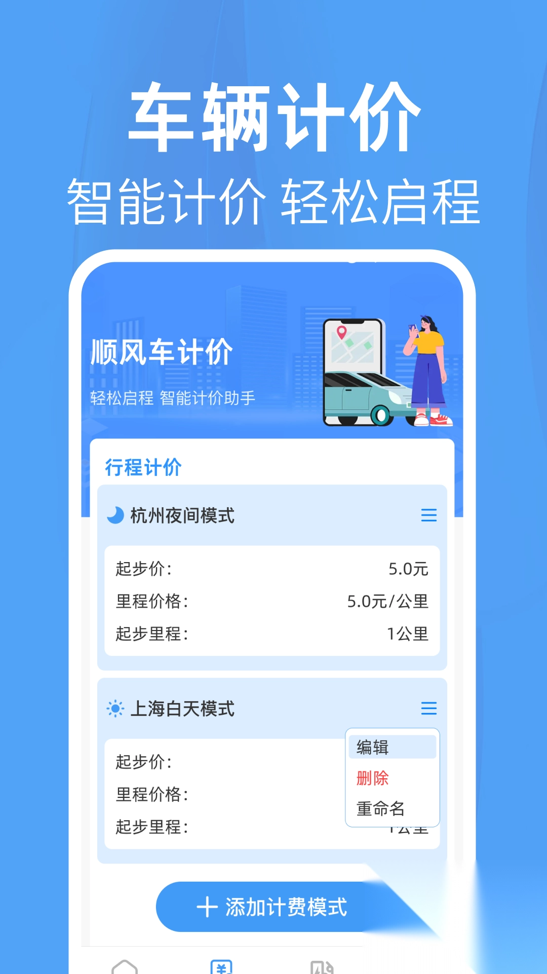 行程计价:能够添加各城市的计价参数,按照自身需求自定义各类参数,系统会依据计费标准自动给出价格估算。