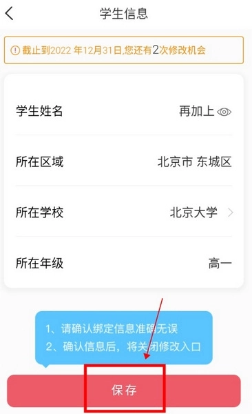 3.之后就可以重新修改和设置学生的个人信息了,完成之后点击下方的【保存】按钮保存设置就完成了。