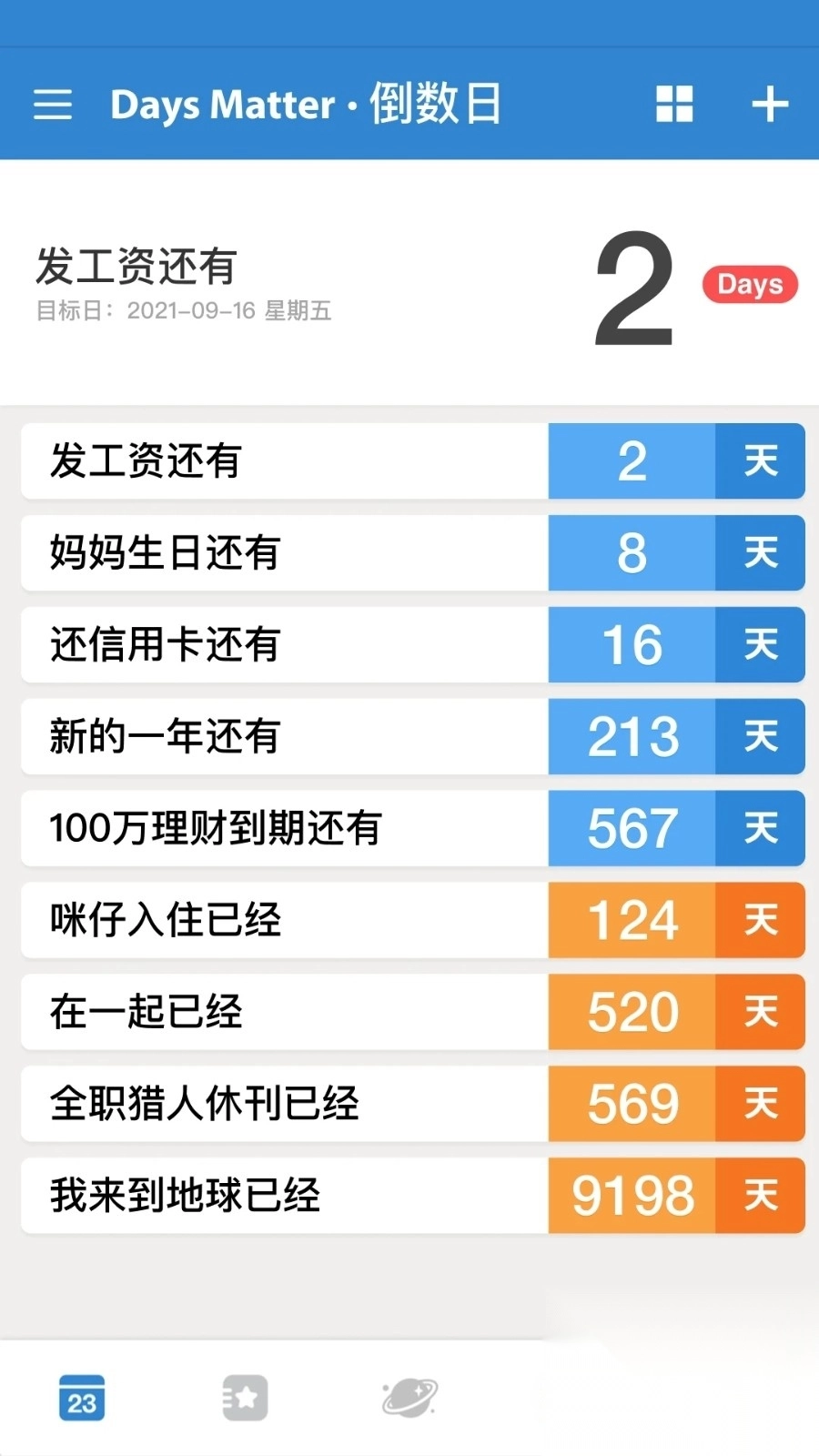 4、返回倒数日主页面,可以在列表页可看到刚刚设置的倒数日;